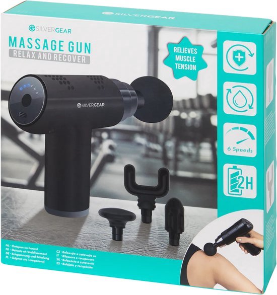 Massage gun voor ontspanning en herstel van je spieren. Last van spierpijn? Dat is verleden tijd met de silvergear massage gun. Beschikt over 6 standen en de batterij heeft een levensduur van 2 uur zonder op te laden. Er worden 4 verschillende opzetstukken meegeleverd.